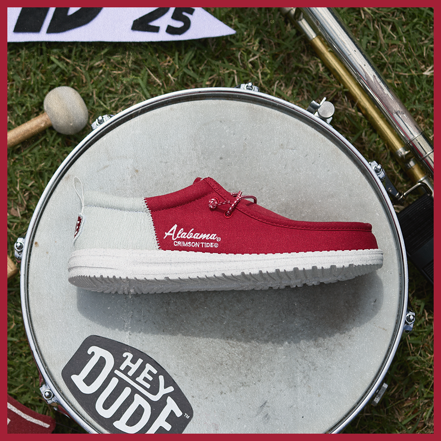 It’s time to take gameday tradition to a whole new level with the most crimson shoes to hit campus. From the Elephant Stomp to the Walk of Champions and Saban Field. these slip ons stay true. Classic canvas and corduroy. Iconic school colors. Team spirit details. Tailgate-ready comfort. And all that Bama rizz. Roll Tide!